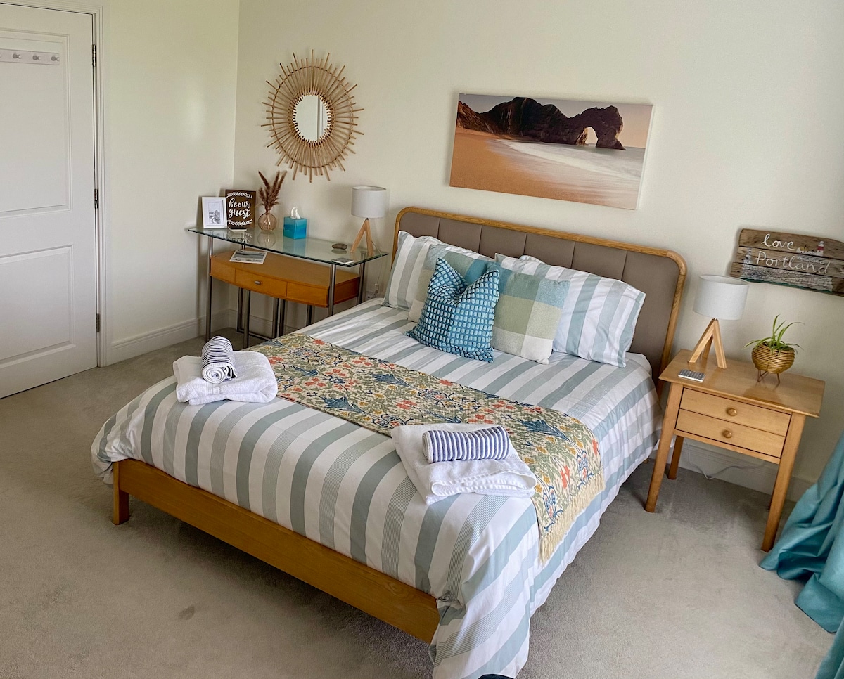Our light bright garden view annexe is ideally situated for enjoying all that the Jurassic coastline has to offer. The harbour at West Bay (setting for ITV’s drama Broadchurch) is a pleasant 10 minute walk away. The bustling historic town of Bridport is only 5 minutes by car or about 25 minutes on foot. There you will find a twice weekly street market, a variety of shops and a good choice of pubs and cafes. Both Bridport Leisure Centre and the Golf Club with driving range are nearby.