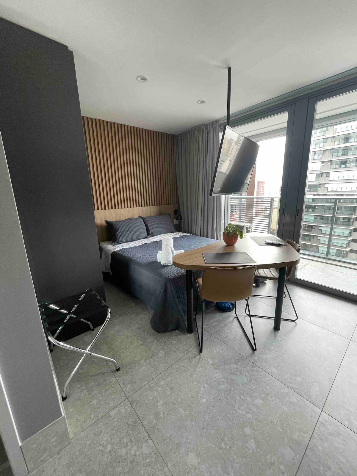 Seja bem-vindo ao seu refúgio no coração do Paraíso. Este studio foi pensado com carinho para proporcionar uma estadia confortável, funcional e memorável. Cada detalhe da decoração, do enxoval à iluminação, foi escolhido para criar uma experiência acolhedora, com a sensação de estar em casa, mas com uma vista privilegiada de São Paulo.