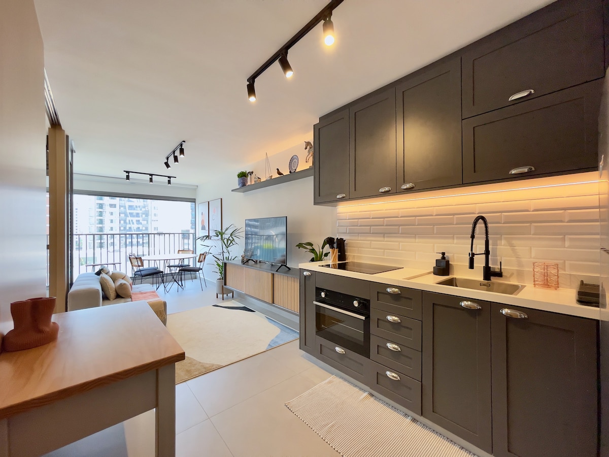 APTO inteiro reformado em Pinheiros a menos de 5min do metrô Oscar Freire, c/ 2 varandas. Tudo novíssimo, móveis, cozinha equipada, 2 smart TV, Wi-Fi 600Mb, ar cond Q/F no quarto e sala, cama king, sofá cama Queen, forno, micro-ondas, máquina de café, filtro de água, enxoval de alta qualidade e tudo que você precisa para uma estadia perfeita. Perto de bares, restaurantes, supermercados a poucas quadras do Hosp. das Clínicas e Paulista. Segurança 24h, academia, estacionamento c/ 2 vagas, piscina.