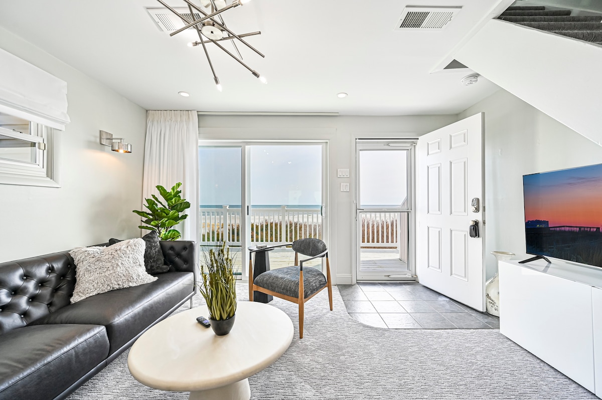 Welcome to South Surf! Upgrade your next trip to the beach, in this 2 bed/1 bath recently renovated condo on the beach block. Queen bed in the master, a twin over full bunk in the guest room, and a queen size sleeper sofa in the living room. Our condo has been thoughtfully decorated, to make you feel relaxed and comfortable. All the amenities are here for you - central air, Wi-Fi, smart TVs in every room, separate driveway, w/d, an outdoor shower, and a backyard for dining al fresco.