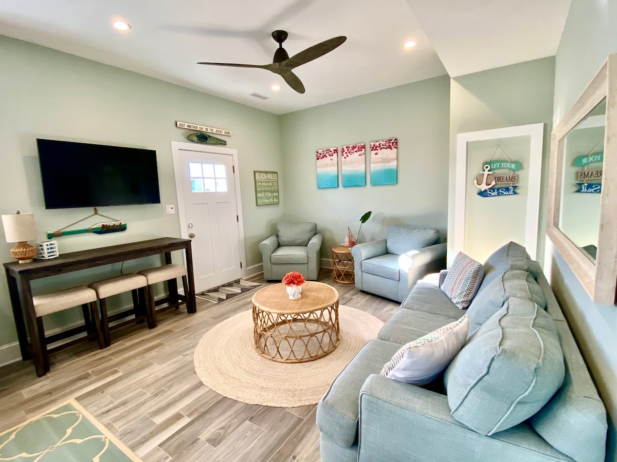 Professionally designed by the acclaimed JAB Design Group, Yacht Rock Escape is a 2- bedroom, 2-bath coastal retreat that blends refined design with effortless comfort & is perfectly suited for cozy, year round stays. Inspired by the relaxed sophistication of cruising the coast on a luxury yacht, the space feels calm, stylish, & inviting with beautiful views in every season. Just 4 houses from the sand, beach access remains easy, while cooler months invite you to slow down and savor the setting.