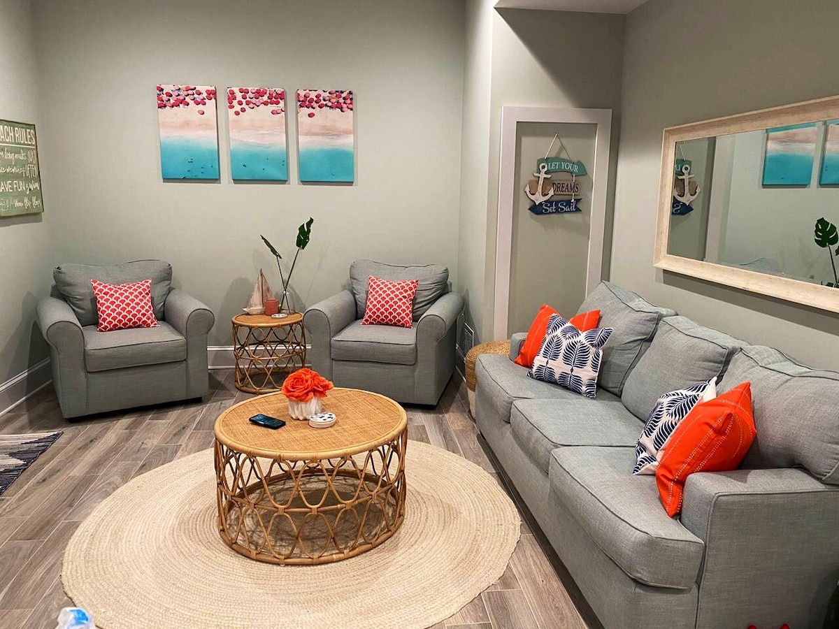 Professionally designed by the acclaimed JAB Design Group, Yacht Rock Escape is a 2- bedroom, 2-bath coastal retreat that blends refined design with effortless comfort & is perfectly suited for cozy, year round stays. Inspired by the relaxed sophistication of cruising the coast on a luxury yacht, the space feels calm, stylish, & inviting with beautiful views in every season. Just 4 houses from the sand, beach access remains easy, while cooler months invite you to slow down and savor the setting.