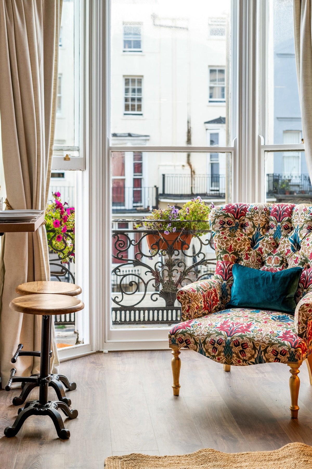 Enjoy an amazing stay in our gorgeous, centrally-located, first floor, balcony flat, set in a converted Regency building in Brighton's trendy Kemptown. Light floods in through 3 full length windows, which look out to sea. The flat has an accessible balcony; is full of original features: high ceilings with decorative plasterwork, fireplace & the original wooden shutters; as well as GCH, open plan, well equipped, kitchen, smart TV, newly fitted walk-in shower (no bath) & a cosy double bedroom.