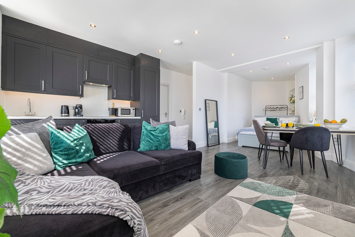 Welcome to our modern 1-bedroom flat in the heart of Brighton town centre! Perfect for up to 4 guests, the apartment features a comfortable bedroom and an extendable sofa bed in the living area. You’ll love the lively location. It’s just a 5-minute walk from the beach, with shops, cafes, and nightlife right on your doorstep. Whether you’re here to relax or explore, this cosy and stylish space is the perfect base for your Brighton stay!