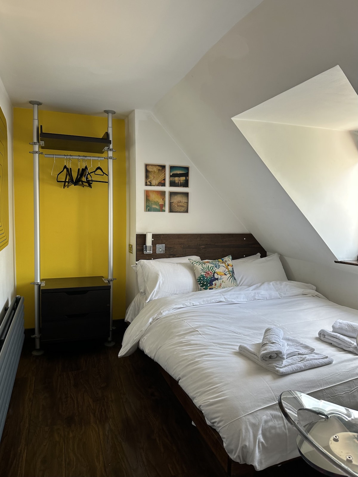 This private room offers a cozy retreat just steps from the seafront, featuring a comfortable double bed, private en-suite bathroom with shower, and free Wi-Fi. Enjoy thoughtful touches like heating, fresh linens, a socket by the bed, and lift access to upper floors. Perfect for couples or solo travelers looking for clean, simple comfort in the heart of Brighton. Non-smoking.