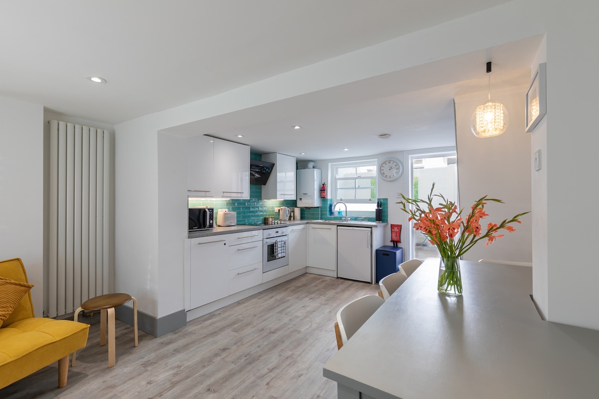 Enjoy this beautiful mews home with family, friends and dogs. In the heart of the popular Kemp Town Village in Brighton. A couple of minutes walk to the beach, local cafes, restaurants and boutiques. We have free on-site parking for one car and offer free off peak charging for EV cars. The property has been set-up with families in mind, so we have available on request high chair, travel cot, baby bath, stair gates, changing mats etc. We are also a dog friendly house.