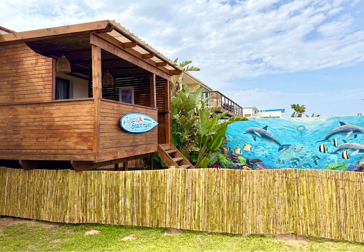 Take it easy at this unique and tranquil getaway! Our cabin is situated directly on the spectacular Indian Ocean, in a safe and peaceful location and has everything you need to rest and relax. Seaside Heaven offers a modern well equipped kitchen, 1 x sea facing king bed, outdoor braai area and is a short walk to the heart of Umdloti ! The Cabin can only be accessed via walking stairs (100 to be exact).