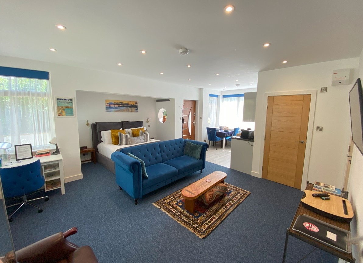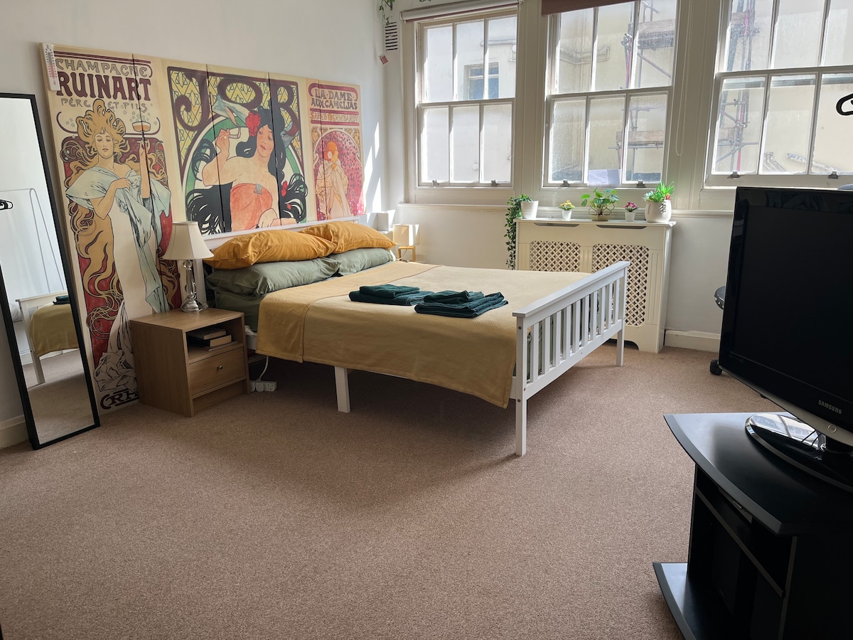 A newly refurbished studio apartment in Kemptown. Situated a 2 min walk to the beach & Soho House. This secluded basement apartment which is situated off the busy St James Street has been refurbished to a high standard to included a large open plan kitchen area, lounge sitting room & open plan raised double bed with ample storage. This is a perfect spot to explore all that our City has to offer. Bars and restaurants a plenty on your doorstep. Note limited mobile signal but can connect to WiFi.