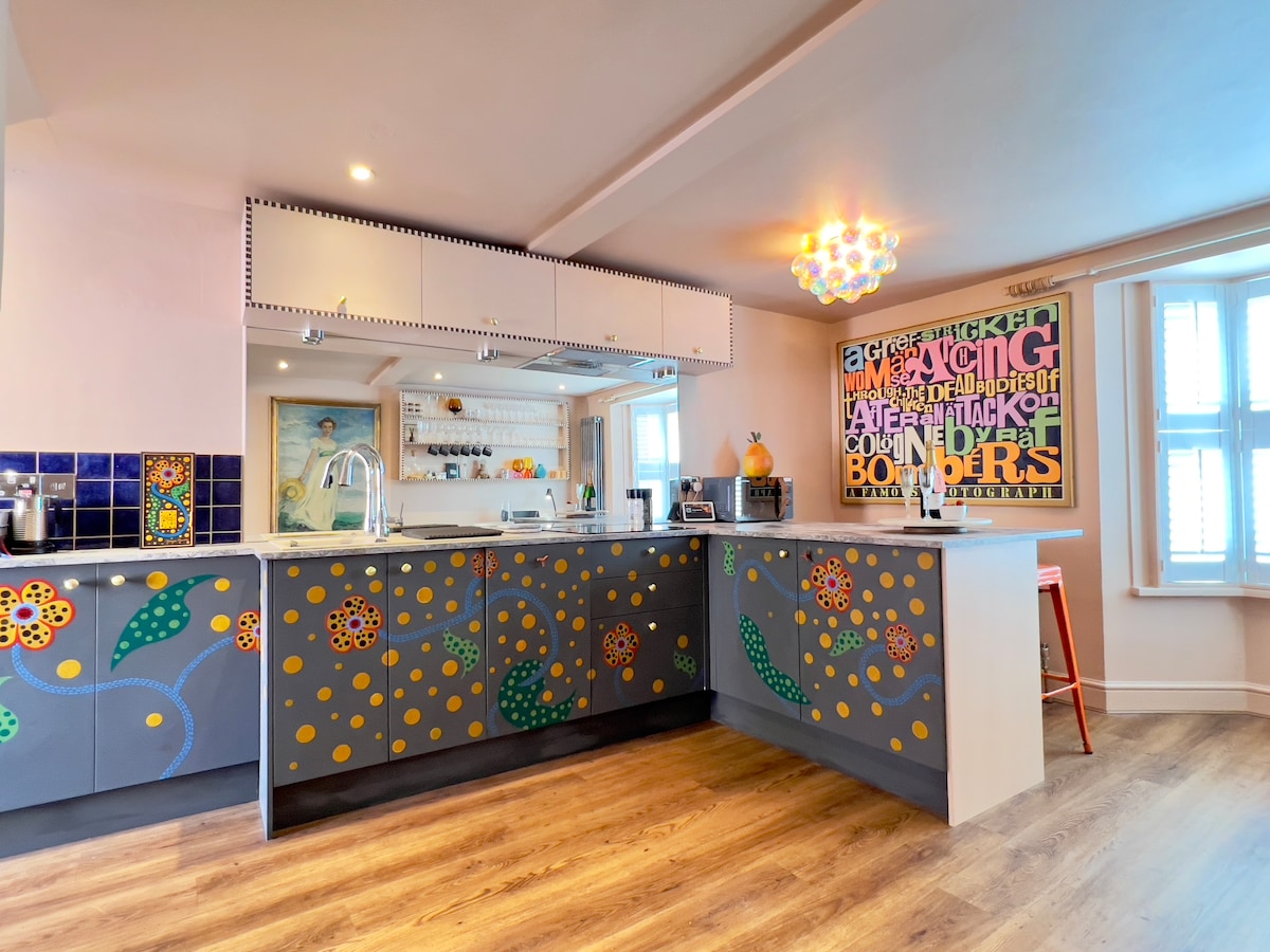 Featured in Elle Magazine, this artist-owned Kemptown home blends Brighton creativity with real comfort. Moments from the sea and minutes from the city centre, it features a cosy cinema room, sunny terrace, luxe king bed, and a fully equipped kitchen. Thoughtful touches make every stay easy, whether you are visiting as a couple, bringing a baby, or travelling with your dog; and free parking! Check the photos and reviews to see why guests love its warm Brighton soul.
