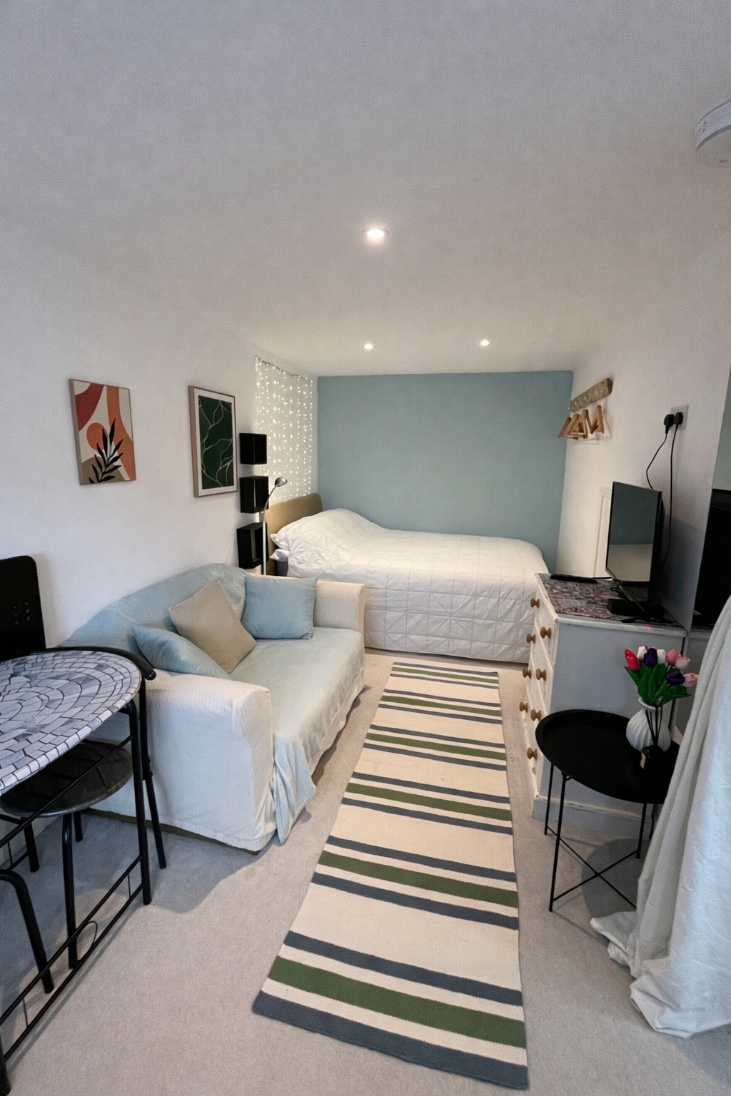 Newly refurbished, this private studio annex designed for comfort, convenience, and a little touch of luxury. Enjoy a cosy double bed, en-suite bathroom, and a handy kitchenette with a fridge, crockery, cutlery, tea & coffee. Stay connected with 150Mbps superfast Wi-Fi, unwind with Freeview/Roku TV to stream your favourite shows, and set the vibe with mood lighting and Bluetooth audio. Just a 30-min scenic walk or quick bus/bike ride to Brighton centre—your smart, stylish home away from home.
