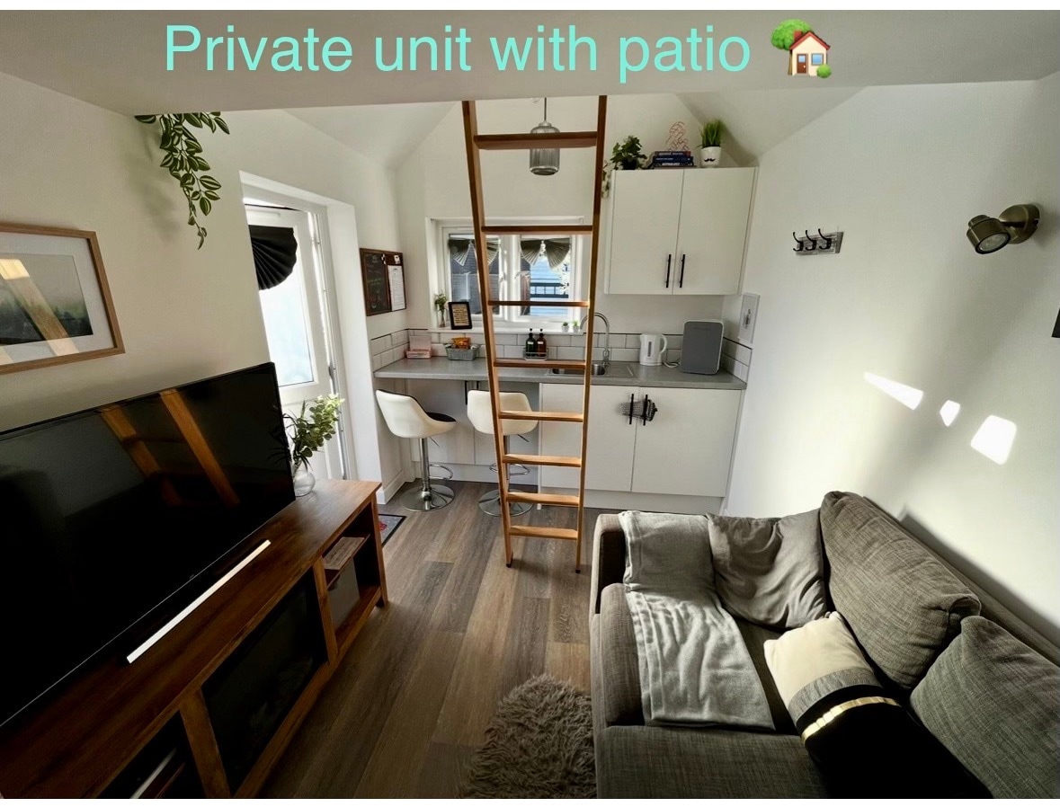 Our Tiny Home sits tucked away in the heart of Hove, in our garden. You’ll sleep on a comfy double bed in the mezzanine, gazing at the stars through a velux. Downstairs, there’s a kitchen with essentials and a private bathroom with a toilet and shower. Step outside to your private patio with a bistro set—perfect for morning coffee. Free parking lines the whole road. It’s an 8-min walk to the nearest station, 20 mins to the sea/central Hove. By car, it’s just 5 mins to Hove, 15 to Brighton.
