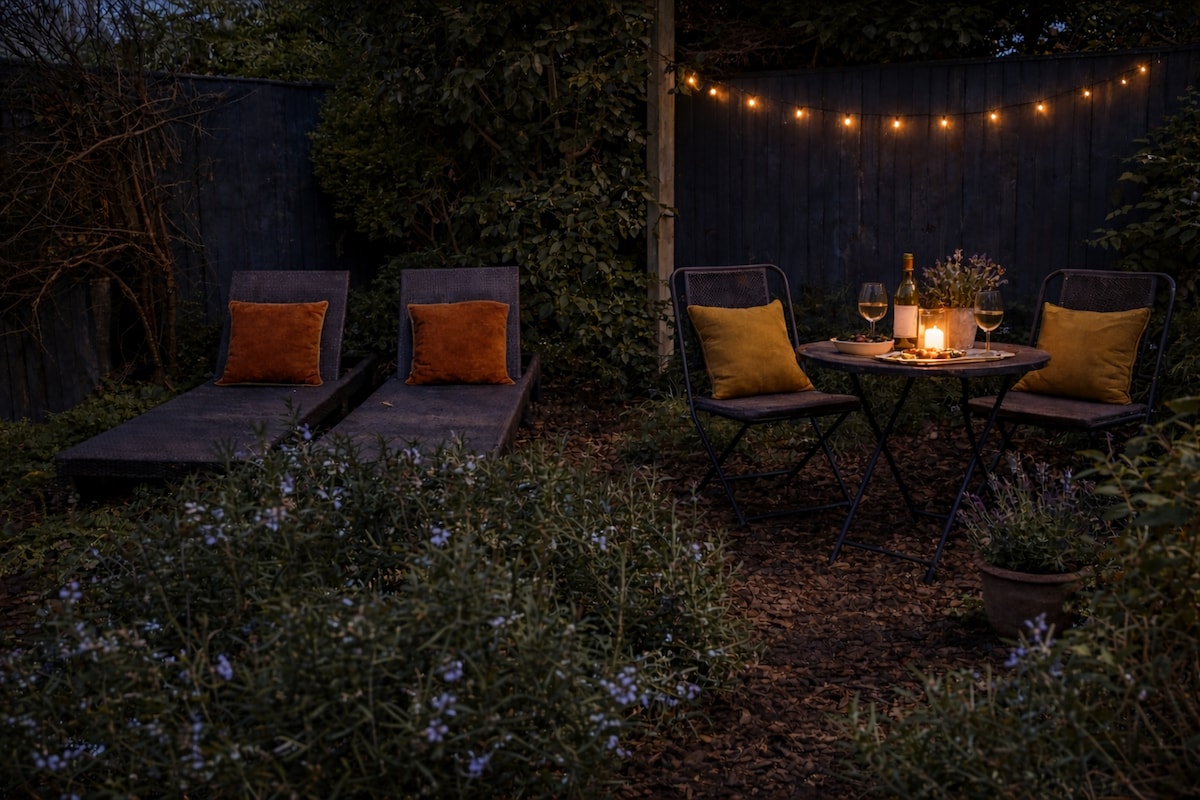 Private sauna, bath, garden studio and home cinema — hidden in central Brighton. An artist-designed retreat perfect for one, couples or friends. Ideal for cosy winter breaks, festival season or summer holidays. Relax in the private garden with sauna and outdoor shower, soak in the bath, then unwind with a cinema-style movie night using the projector and streaming services. Stylish interiors, king-size bed and thoughtful comforts throughout. Walk to the station, beach, shops and nightlife.