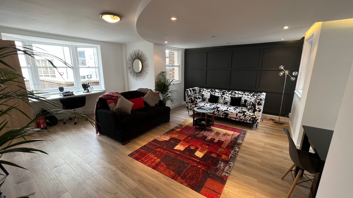 Stylishly decorated townhouse next to Brighton train station, the popular North Laines, and only a 8-minute walk to the beachfront. The historic charm of the townhouse is complemented by a handcrafted marble-top kitchen and elegant features, including bespoke cabin beds and mid-century furniture. A luxury experience for guests seeking something memorable. There are 2 bedrooms, a modern shower room, a cosy living room, an open-plan kitchen/dining area, and a dedicated workspace.
