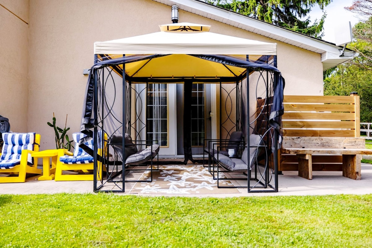 Escape to a bright, spacious cottage set on a private one acre lot, about an hour from the GTA. Unwind with cozy fire pit nights, a pool table, and BBQ meals, plus fast WiFi and a dedicated workstation for remote work. You are also close to Presqu’ile Provincial Park for beaches and trails, downtown Brighton for cafes and dining, and Ste. Anne’s Spa for a relaxing day trip. Looking to explore more? Enjoy easy day trips to Sandbanks and Prince Edward County wineries.