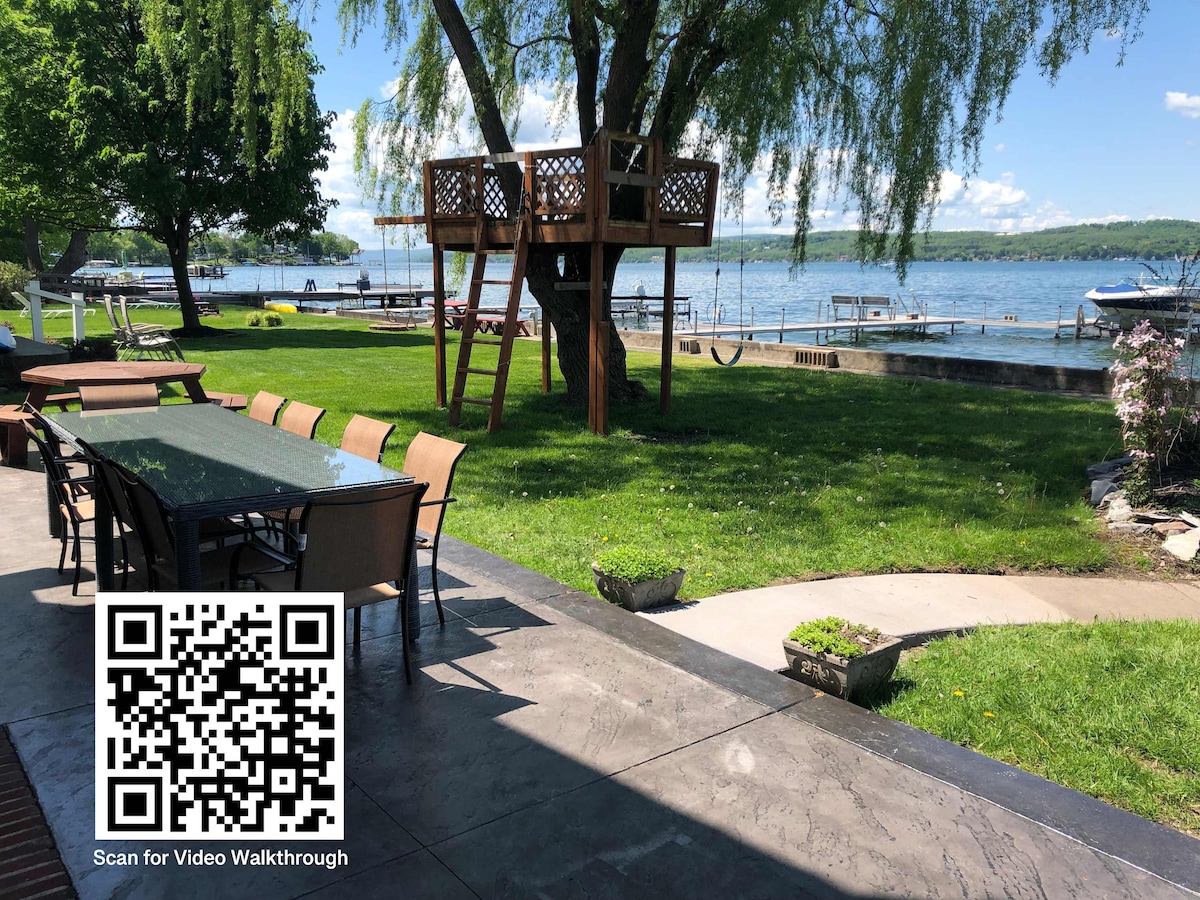 NEWLY REMODELED IN 2022. GORGEOUS HOME OVERLOOKING CANANDAIGUA LAKE This beautiful home has a brand new patio with fire pit/barbecue area for summer fun. The home has 4 bedrooms and 2 baths. It has a kitchen with built in dishwasher, stove and refrigerator, large living room and dining room (both rooms have spectacular views overlooking the lake). The house is also protected with video surveillance on the exterior.