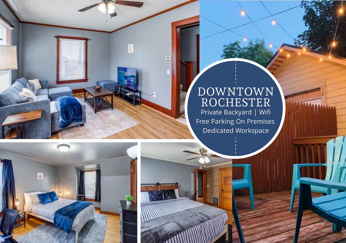 Come join the fun at the centrally located historic neighborhood! This space has it all. A quiet street close to UofR, Park Ave & South Wedge night life, Cobbs Hill and Highland Park. Conveniently located near major highways & hospitals. Local dog parks for your furry friends as well. All amenities close by! If you feel like staying in, enjoy the back patio with the fenced in spacious back yard and fire pit, or a movie night in the cute & cozy living room or bedroom.