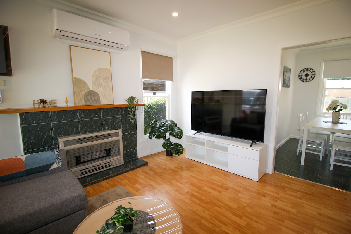 THIS ACCOMMODATION IS EXEMPT FROM OCCUPANCY TAX—BOOK AND SAVE 7.5%! - Stylish home for 2 or a family of 3-4 - Full kitchen with large fridge, dishwasher & essentials, filled with natural light - Spacious living room with books, games, and Smart TV (Netflix included) - Roomy bedroom with queen bed & single trundle - Double sofa bed in the living room (with room divider) - Toilet with bidet sprayer - Easy car travel (5 mins to M80/M1) & public transport access