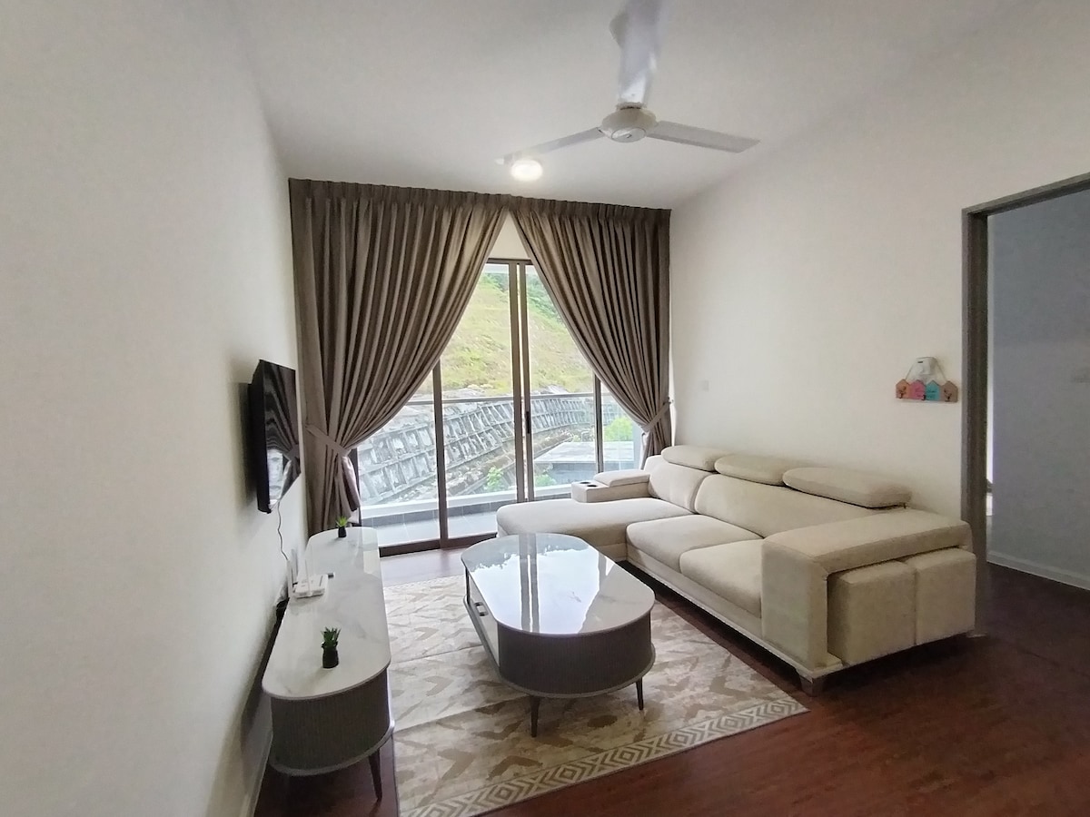Facing greenery at highest floor in Brinchang town, Emeralds Avenue. 4 queens + 2 single beds for 10 pax & 3 baths. 3 car park near lift. Senior friendly. Fully fitted kitchen with Coway water purifier. Behind Centrum Mall. walking distance to more than 100 eateries, Burger King, KFC, Billion supermarket, wet& Cactus Valley. Free Unify & Netflix. 55” smart TV. We provide mahjong & carrom tables For 20 pax you can book connecting unit. EA922-Link https://www.airbnb.com/h/josplaceemera ma