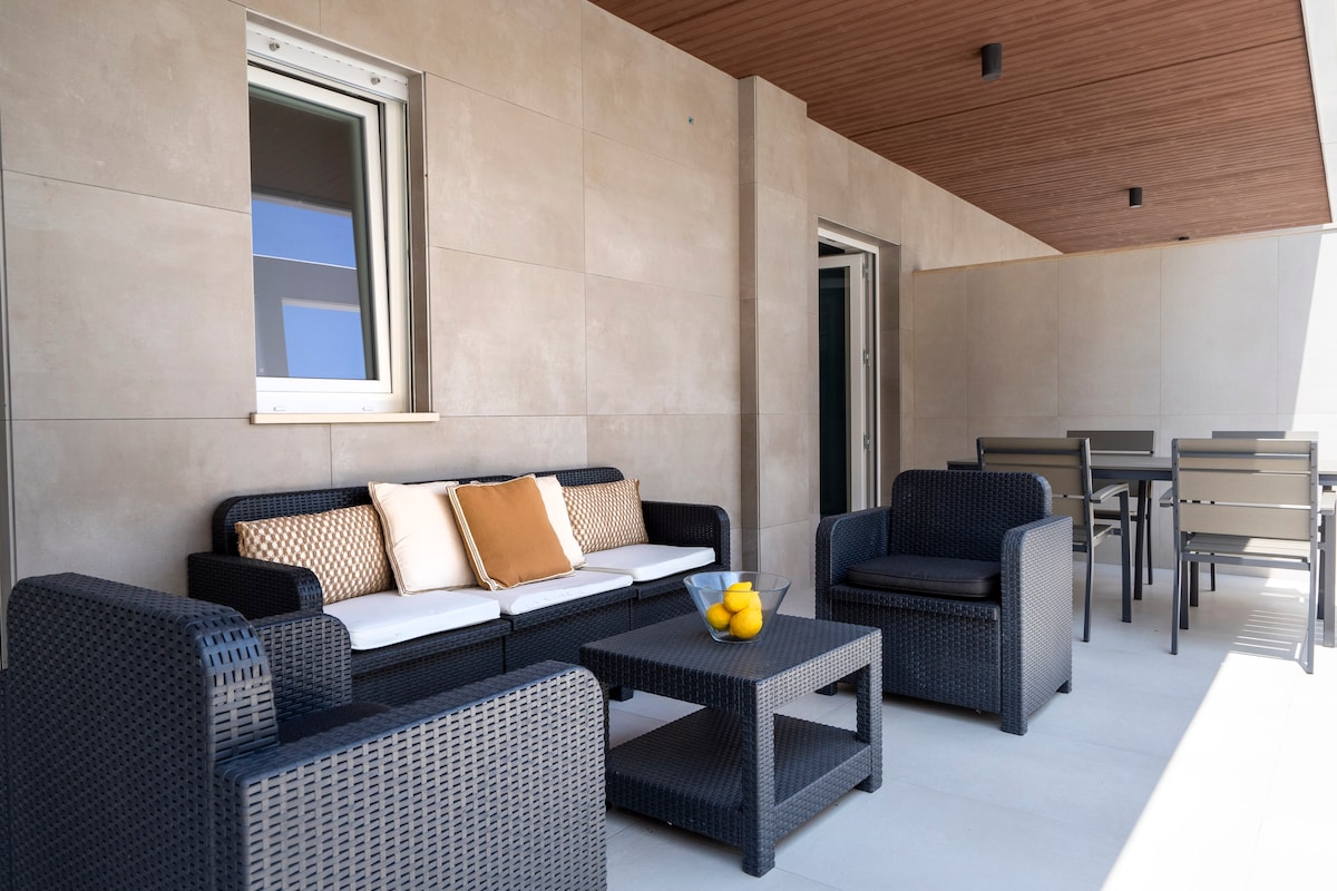 You'll feel in heaven on the sofas of the terrace in the historic center. Blue everywhere: the sky and the sea blend together. The silence broken only by the seagulls' voices. Sunset aperitifs and nights full of stars will be unforgettable. The ideal home for those who are searching for quiet and peace: cozy, clean and familiar, with stylish and exclusive design. From the typical courtyard of the historic center, two flights of stairs will take you to the attic. Recently renovated and furnished with care for the smallest details, it' s ready to welcome you for a dream holiday. It has a lounge, well-equipped kitchen with dishwasher, 1 bedroom with fireplace, 1 bedroom with TV and desk, 1 bathroom and 2 gorgeous terraces for exclusive use. PLUS 1: EXTREMELY RARE TERRACE AT THE SAME LEVEL OF THE APARTMENT: equipped with outdoor kitchen, dining table in the shade of bamboo pergola and large outdoor shower made of Salento’ s typical tiles. So you can, through the large window of the living room, cook, have lunch, relax or have a refreshing shower directly on the terrace. PLUS 2: EXCLUSIVE UPPER TERRACE: a staircase of a few steps will lead you to the large terrace overlooking the sea of the beach of Purità: equipped with built-in sofas, spacious bamboo pergola to shelter from the sun, colored deckchairs and a large table to have dinner under the stars • The house and the terraces are your complete and exclusive arrangement! • The apartment is suitable for adults friends and families with children. • We have powerful AC WI-FI, free for our guests. • Dishwasher and washing machine are available A trusted person will give you the keys on your arrival. For any need you can contact us by phone or mail or whats App. insta gram @mactoia This peaceful home sits in the historic seaside town of Gallipoli. Walk to supermarkets, pastry shops, great restaurants, trendy clubs, and the marina and beautiful beach. CHILDREN: In the presence of children, the large upper terrace requires the presence and supervision of an adult. STAIR: To reach the apartment there are two flights of stairs to do. Also from the first terrace there are a dozen steps to go up to the upper terrace. PARKING: It is not allowed to enter the old town of Gallipoli by car: you can park your car in the parking lot of the marina and continue on foot: the house is about 200 meters away.