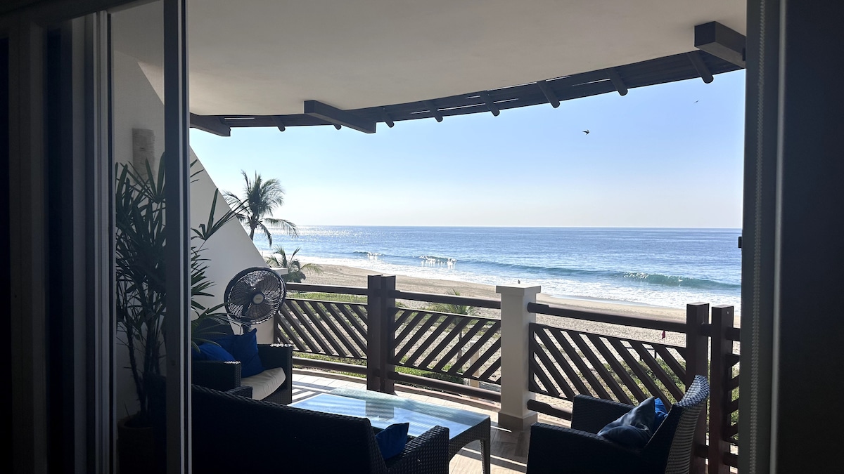 Depa amplio y luminoso en planta alta con 2 camas queen súper cómodas, A/C en la recámara y ventiladores en sala y cocina. Cuenta con cocina equipada, salita acogedora y balcón con vista a palmeras. Estás a solo 2 min de la playa y a 1 min de cafés, tiendas y restaurantes. Disfruta el patio compartido con hamacas, árboles frutales, asador y área de pesas artesanales. Ideal para relajarte, surfear o trabajar remoto con buena vibra.