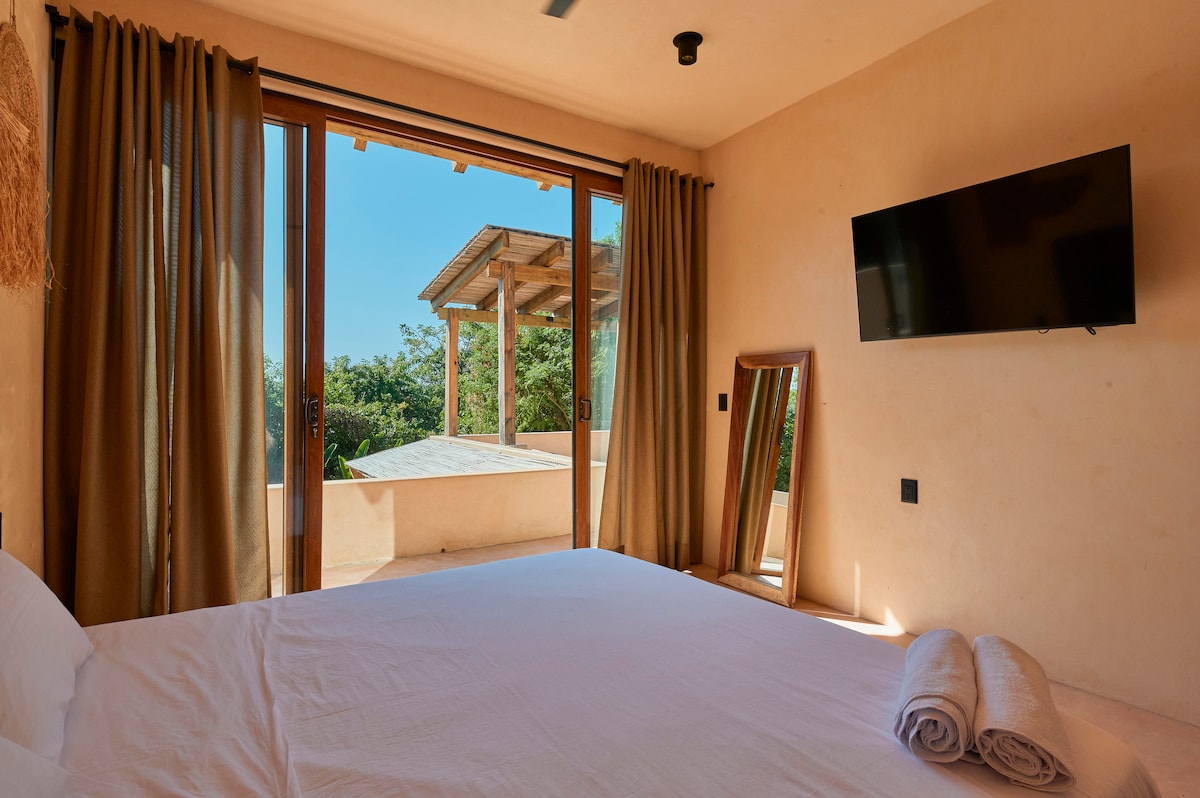 Habitación con vista palacial al Océano Pacífico y a los atardeceres de Puerto Escondido, un diseño "relax chic", con mucha iluminación y una cama "king size". Una ubicación privilegiada para disfrutar la estancia en este destino. no querrás irte de este lugar tan único y encantador. No niños ni mascotas