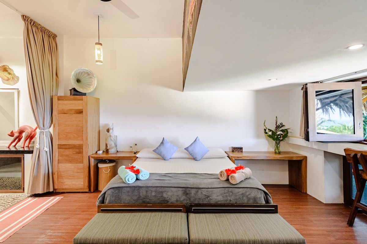 Elegante suite con cama Queensize, Smart TV, Aire acondicionado, ventilador de techo, cocina, baño y jacuzzi privado. Disfrute de los atardeceres y relaje su mente mientras contempla la vista panorámica de la ciudad, el océano y las montañas desde su jacuzzi privado. Nos encontramos en Punta Zicatela, a 7 minutos caminando de la playa, principal punto de surf, restaurantes, bares y zona comercial. Cerca de todo, pero fuera del bullicio de la fiesta. Contamos con Internet Starlink.