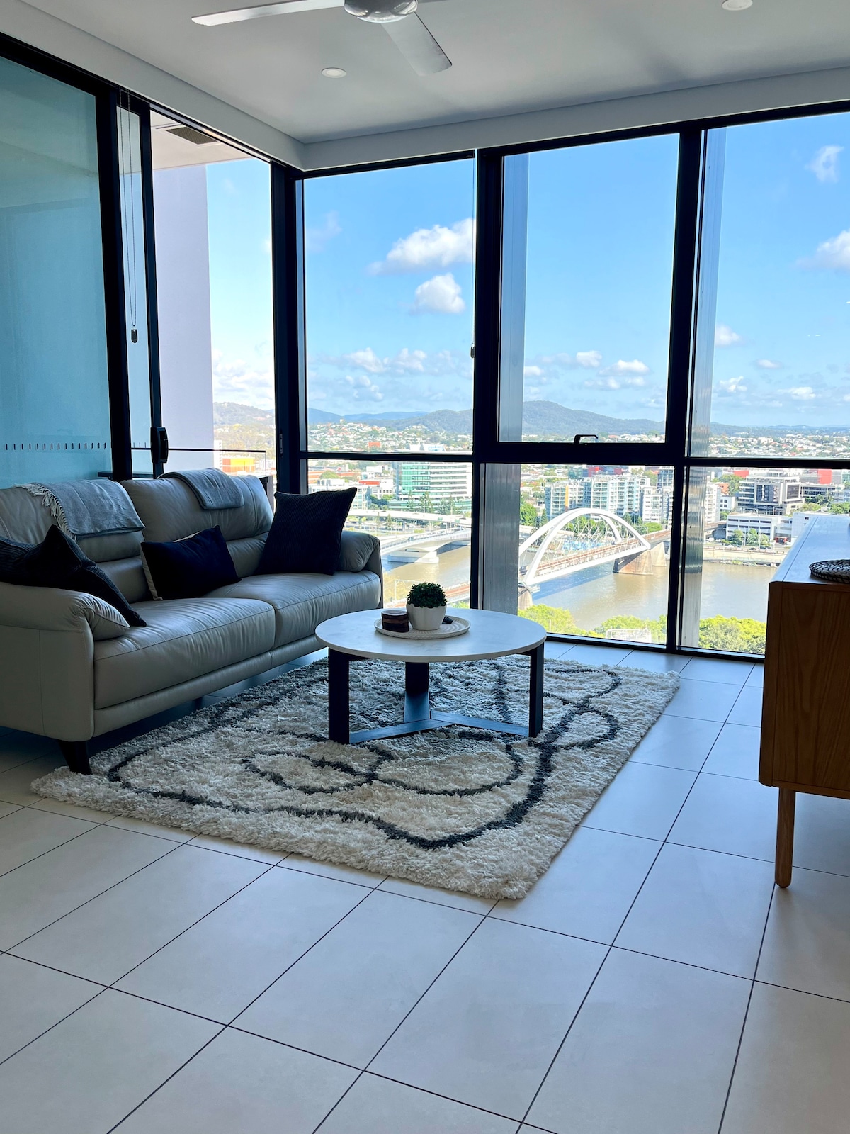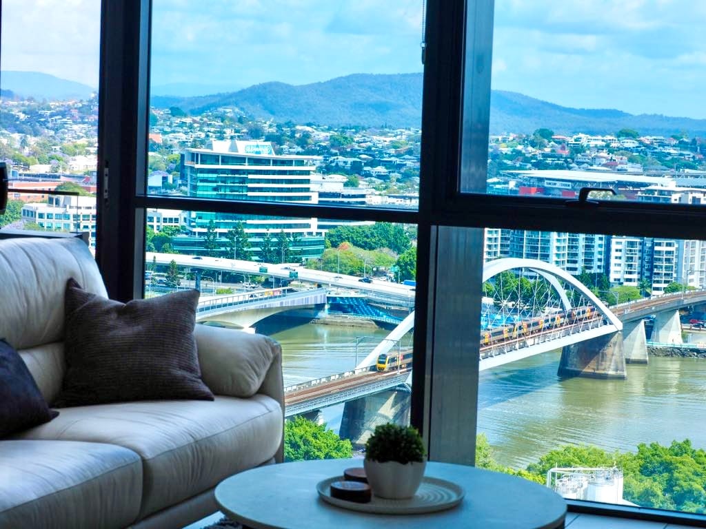 Our apartment is set on level 20 rising high above the city with 180° uninterrupted views of the beautiful Brisbane river from the living room. Thoughtfully decorated and furnished, this apartment will be the perfect base for you to explore and experience all that beautiful South Brisbane has to offer. Leave your car parked and walk to South Bank Parklands , GOMA, QPAC, Star Casino and experience the wonderful restaurants of South Brisbane and West End. A 15 walk to Suncorp stadium!