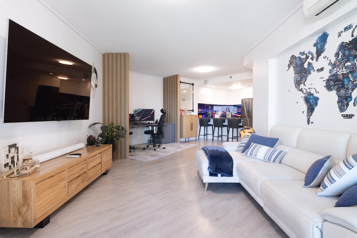 My apartment is set on level 26 rising high above the city with 180° uninterrupted view of our beautiful Brisbane river from the living room. Thoughtfully decorated throughout and carefully maintained clean and tidy, this apartment can be your ideal base for you to explore and enjoy the cultural South Brisbane and the CBD. The building is conveniently located. State library, museum and the QPAC are literally just around the corner. Only a short walk to Brisbane city, South Bank and West End.