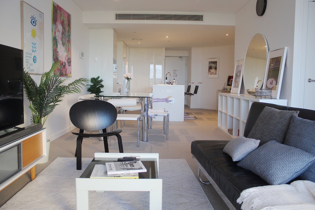 Welcome to our comfy and modern apartment with 2 beds + 2 bathrooms, and a spacious living room with a large balcony. Conveniently located in the central and vibrant Indooroopilly area, only 20 minutes short train trip to Brisbane CBD and just a 10-minute walk to Indooroopilly Shopping Centre, with train and bus stations right outside the door. The neighbourhood is very friendly and safe, with plenty restaurants and cafes. I am an artist and lover of art so the walls are covered in paintings.