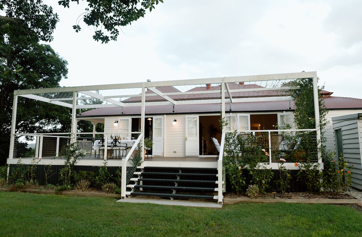 Located just 10min from Dayboro this is a beautifully restored 1920’s Queensland farmhouse with unrivalled views of Lacey’s Creek valley bellow. Situated at the top of a ridgeline on an 110acre working farm with numerous walking tracks to explore and many incredible views. Heritage accommodation, with 3 bedrooms, a large family room, full kitchen and beautifully restored bathroom. Sit on your own private balcony and enjoy sunset over the valley with a ever present cool afternoon breeze.