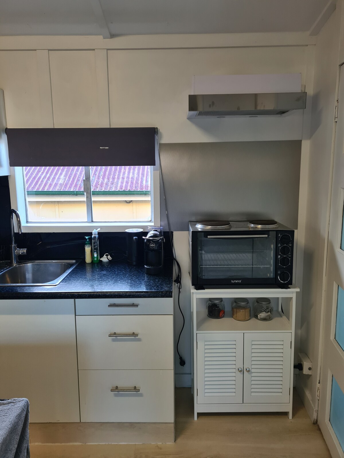 Soak your cares away in the private outdoor hot tub, nestled on your own leafy deck. This peaceful studio sits quietly behind our 112-year-old Queenslander — a hidden gem just 100 metres from Wooloowin train station. Step inside through French glass doors to a spotless, modern studio complete with everything you need: • A private deck with spa • A fully equipped kitchenette including coffee machine • Hair dryer • Off-street parking for peace of mind • Pet-friendly for one sml doggie