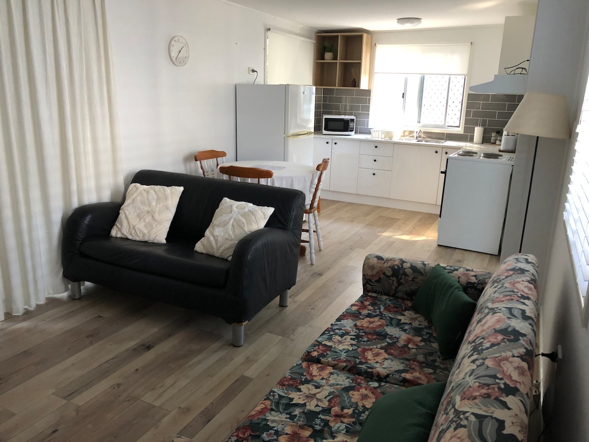 If you are searching for a cozy retreat with a private living room, a queen-size bedroom, your own laundry and bathroom, look no further! This guest house is the heart of Moreton bay, nestled in bushland where you can spot wallabies in the early mornings. Its just a 10-minute walk to local shops, lakeside restaurants, a short drive to beaches, ferries to local islands and wineries. The place offers AC, ceiling fan, Wi-Fi, available parking space for a caravan or boat, a pool, and BBQ area.
