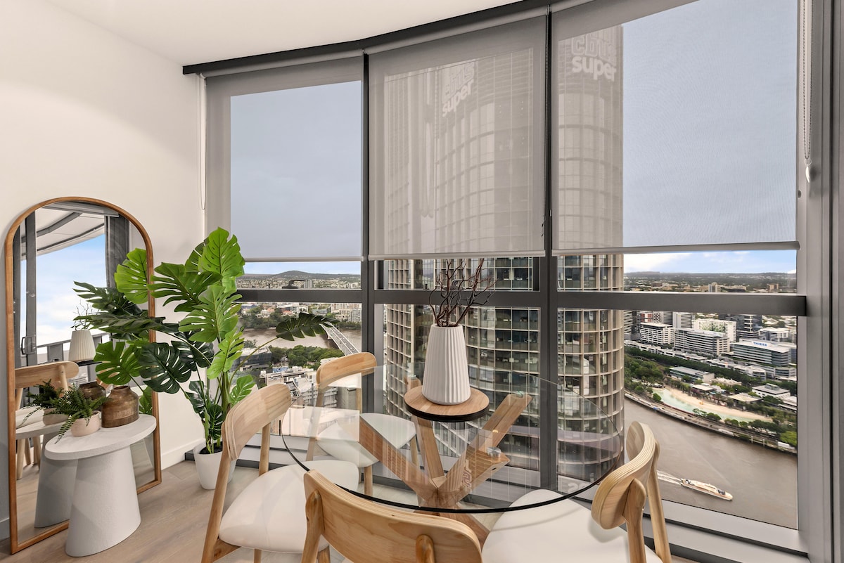 Our apartment is set on level 20 rising high above the city with 180° uninterrupted views of the beautiful Brisbane river from the living room. Thoughtfully decorated and furnished, this apartment will be the perfect base for you to explore and experience all that beautiful South Brisbane has to offer. Leave your car parked and walk to South Bank Parklands , GOMA, QPAC, Star Casino and experience the wonderful restaurants of South Brisbane and West End. A 15 walk to Suncorp stadium!