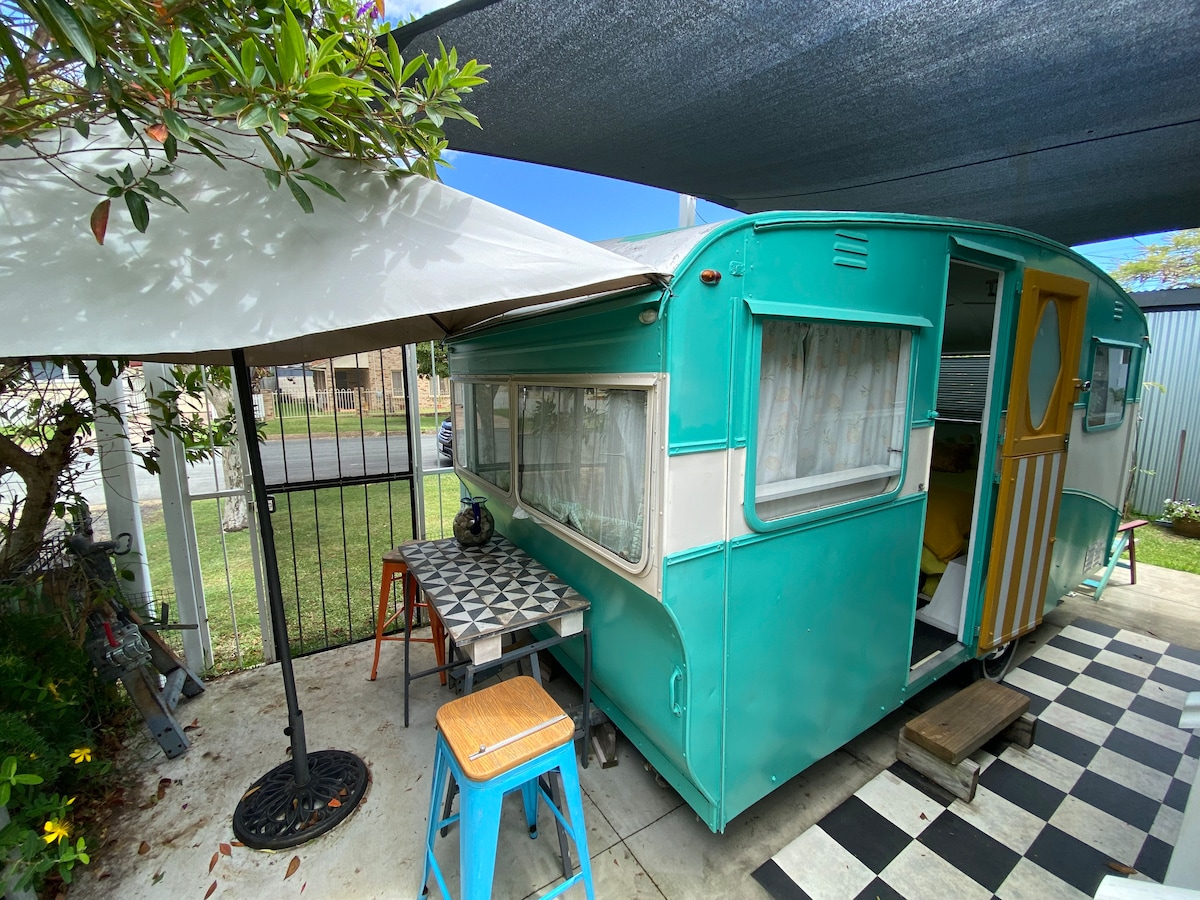 Experience a night under the stars in our 1974 renovated Millard caravan. A perfect and affordable inner-city stay-over.