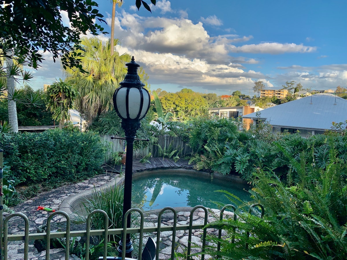 Welcome!! Fully self-contained poolside guest suite, set in lush tropical gardens in a safe neighbourhood. Easy walk to many vibrant restaurant/shopping precincts and farmer's market. Just 3km from the beautiful Brisbane CBD, Convention Centre, and Iconic South Bank Parklands. Only 300m to Wesley Hospital, 3km University of Qld, 3km QUT, 1.6km Suncorp Stadium, 3km Mt-Cootha's tranquil bush walks, 1km Toowong Village, Regatta Hotel and Riverwalk. Only 50m Bus, 200m Train, 1km CityCat Ferry