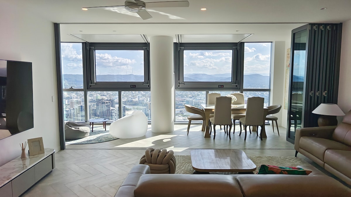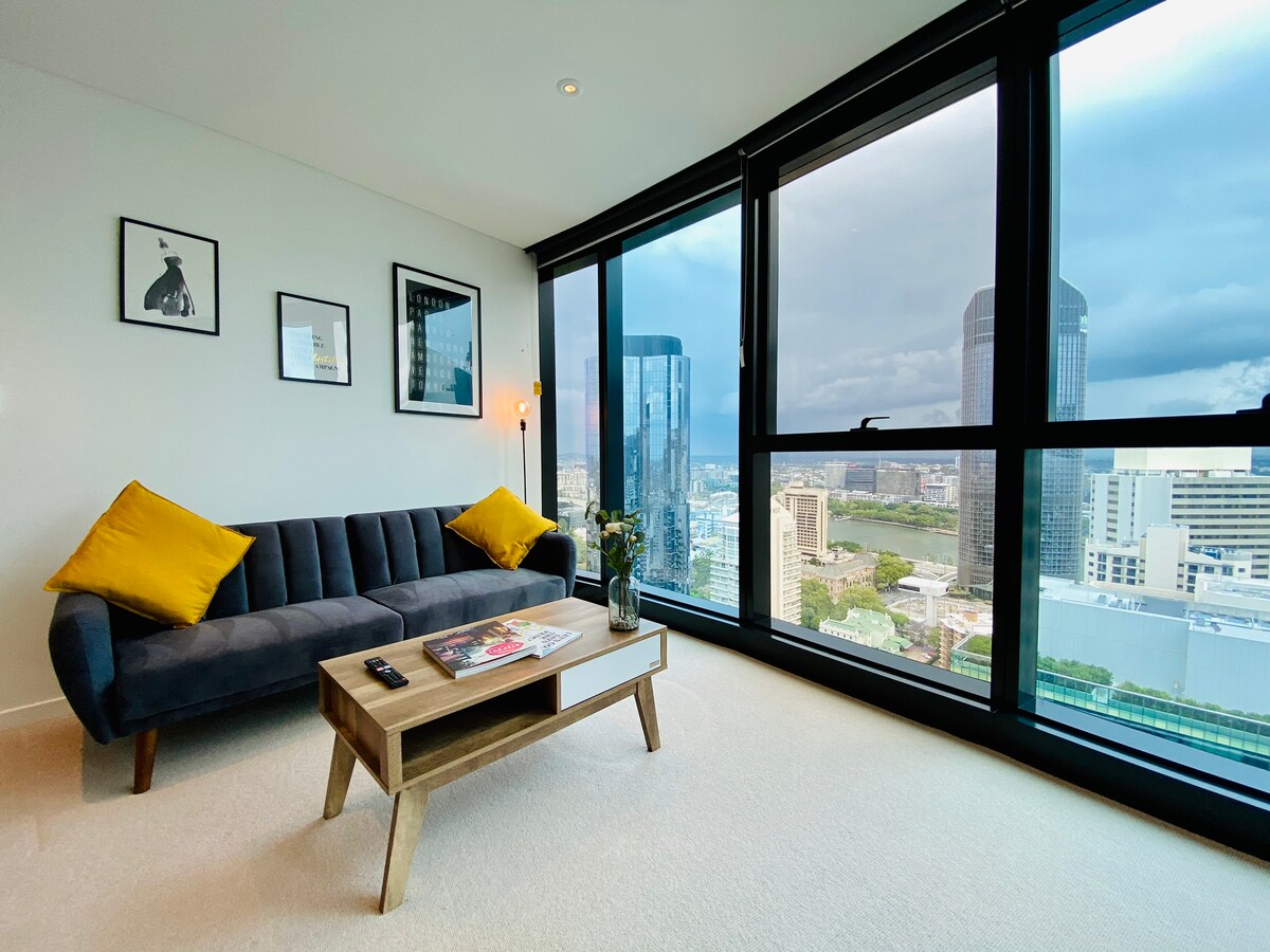 🌇 Luxury CBD Apartment | Free Secure Parking 🚗 River, city & Bay views from a modern high-rise stay Amongst Clouds. 🛏 Sleeps 5 ✔ King Bed ✔ 2 Singles or King (flexible) ✔ High quality lounge converts into bed 🏡 Premium comfort Quality furniture & hotel-style linen 🏊♂️ Level 66 pool, gym, steam room, BBQ 📶 Wi-Fi, Nespresso & Netflix Premium (No Ads - 4k) 🔑 Easy self check-in 📍 Walk to South Bank, Star Casino, Queen St Mall & Eagle Street dining, River side, Botanical Gardens