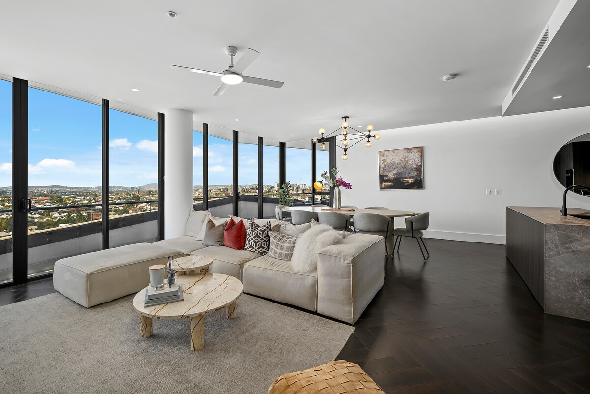 Find your calm in this Diamond-Class 1BR retreat on Level 59 of Queen’s Wharf. Enjoy sweeping river & city views, a breezy electric window, modern interiors and high-speed Wi-Fi—just steps from South Bank, Botanic Gardens and Brisbane’s finest dining. Ideal for couples, corporates and weekend escapes. ✔ No Added Cleaning Fee ✔ King Bedroom & Sofa Bed (Sleeps 4) ✔ Full Kitchen & Open Living ✔ Indoor Electric Balcony Window ✔ Smart TV & Wi-Fi ✔ Pool, Gym, Sauna & Restaurants Learn more below 👇