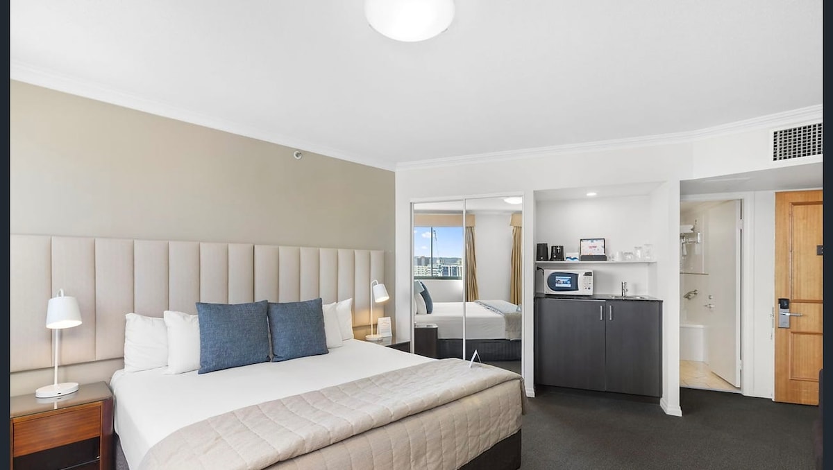 Our stunning riverview & botanic-garden view king-sized one bedroom apartment is perfectly for short term and long term stays. Situated in inner CBD, Brisbane’s SkyTower building is close to everywhere! Apt features include: -Spacious bedroom with King size bed and built in wardrobe. Fresh towels and linen provided. -Sofa bed in living area -Central air conditioning -Gas stove top with full chef’s kitchen -Hide away laundry area -Washing machine and dryer -Coffee machine -Smart TV -Free WIFI