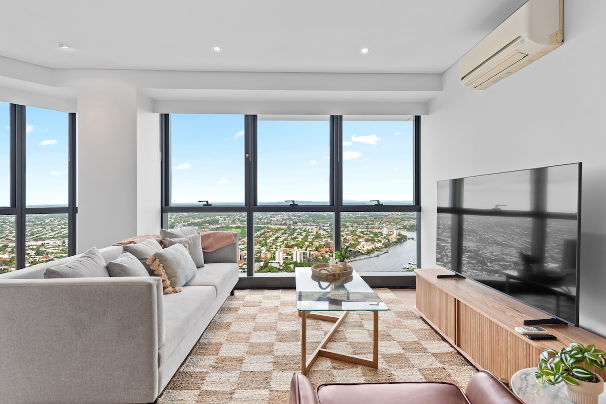 Experience Brisbane from one of the city’s best vantage points. From sunrise to nightfall, enjoy sweeping views across the skyline from every room, truly a show-stopping sight that makes this stay one of a kind. Perfectly positioned in the heart of the CBD, you’ll be just minutes from Howard Smith Wharves, Queen Street Mall, and the riverfront dining precinct. Step outside and everything Brisbane has to offer is within easy reach, yet inside, you’ll find peace, comfort, and home-like warmth.