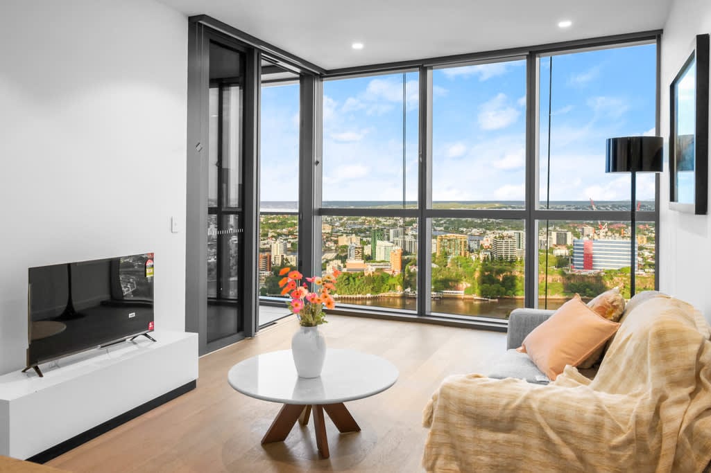 Our apartment is set on level 20 rising high above the city with 180° uninterrupted views of the beautiful Brisbane river from the living room. Thoughtfully decorated and furnished, this apartment will be the perfect base for you to explore and experience all that beautiful South Brisbane has to offer. Leave your car parked and walk to South Bank Parklands , GOMA, QPAC, Star Casino and experience the wonderful restaurants of South Brisbane and West End. A 15 walk to Suncorp stadium!