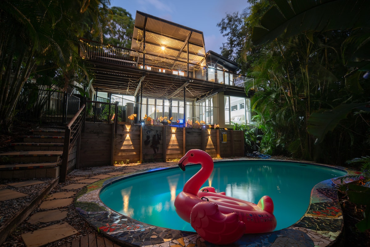 An entertainers heaven! enjoy with the whole family or a group of friends at this stylish architecturally designed house. 8 sleep pod 4 in master room. Water front exclusivity with a peaceful outlook to parklands. Outdoor deck leading onto the plunge pool, perfect for summer. Full kitchen, Crystal glassware, smart fridge with water and ice dispenser and Auto blinds, large billiard table and plenty of indoor and outdoor space for the kids including large grassed area on the banks of Oxley Creek.