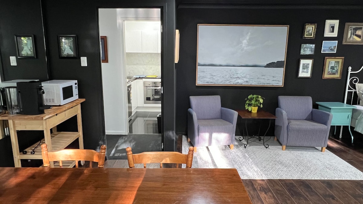 Soak up the nautical vibe at an Eco conscience self-contained abode.Enjoy a modern building, with fast internet, EV charger and quality furniture. Open up the living's sliding doors to catch sea breezes and step out onto the terrace nestled in a shared garden. Ideal for 2, but a foldout sofa in the living allows 4 people (age 12 and above) to sleep in the apartment. The unit is equipped to accommodate people looking for longer stays, but also very suitable for a quick stay.