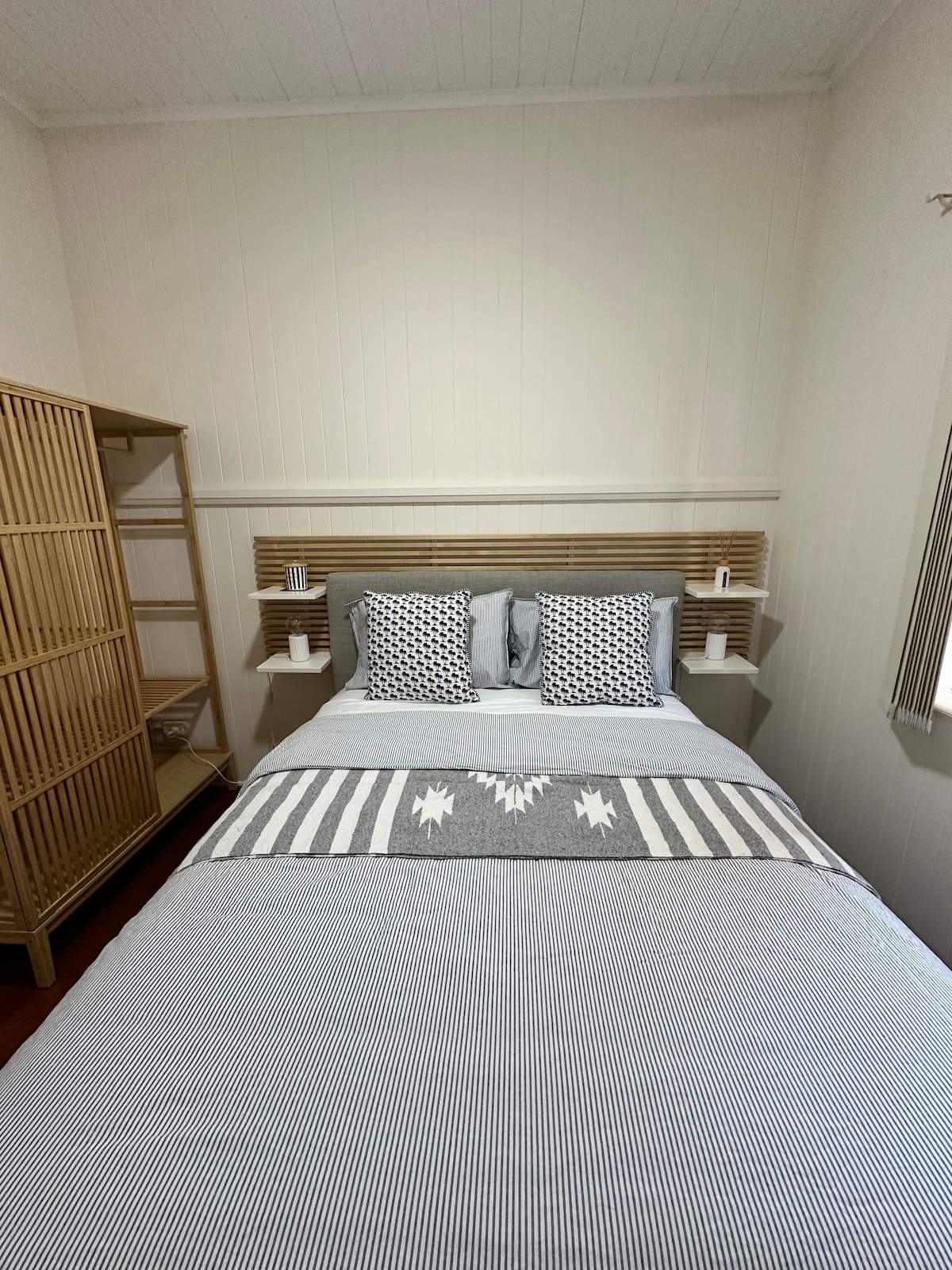 This light filled studio is tucked away in a private area of our property and is the perfect restful escape for just yourself, couples, or small families. The studio has a Scandinavian summer house style featuring red weatherboard with white trimmings and a pergola. It is 5 minutes walk to the Sandgate waterfront, good cafes, and local bars. Little Red and our home have recently seen some changes. For Little Red, guests will now benefit from a private yard, and a new outdoor covered patio area.