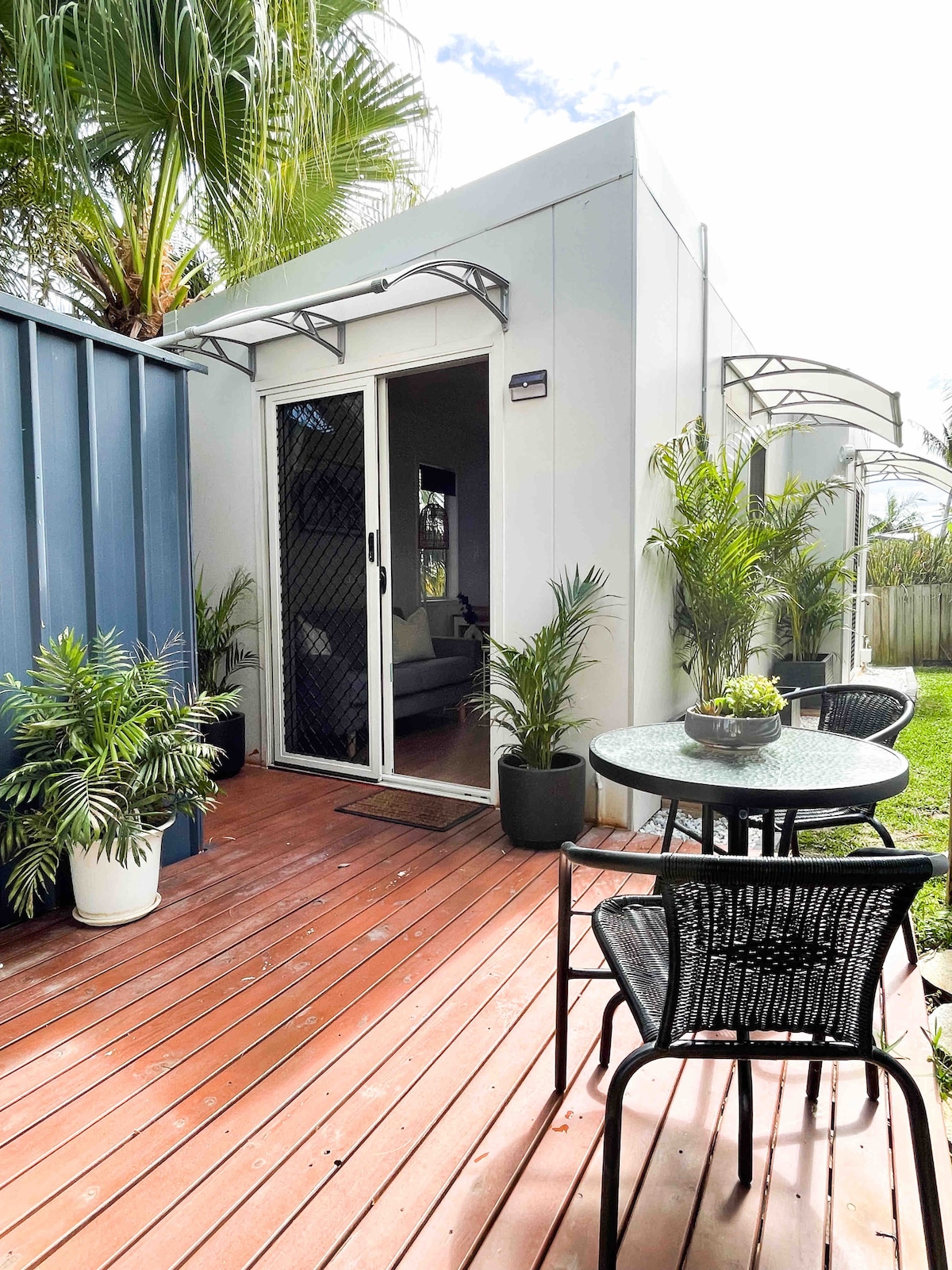 Hidden among the palms is our fully self contained private guesthouse. Relax in this stylish abode which is ideal for couples or solo travellers looking to explore the Moreton Bay region. Take your morning coffee for a walk in the nearby park or venture on a brief drive to Flinders Parade to tour the beach and enjoy the local seafood. You’re only a short walk to the local convenience store & cafes. 5 min drive to Sandgate Village 10 min drive to Brisbane Entertainment Centre
