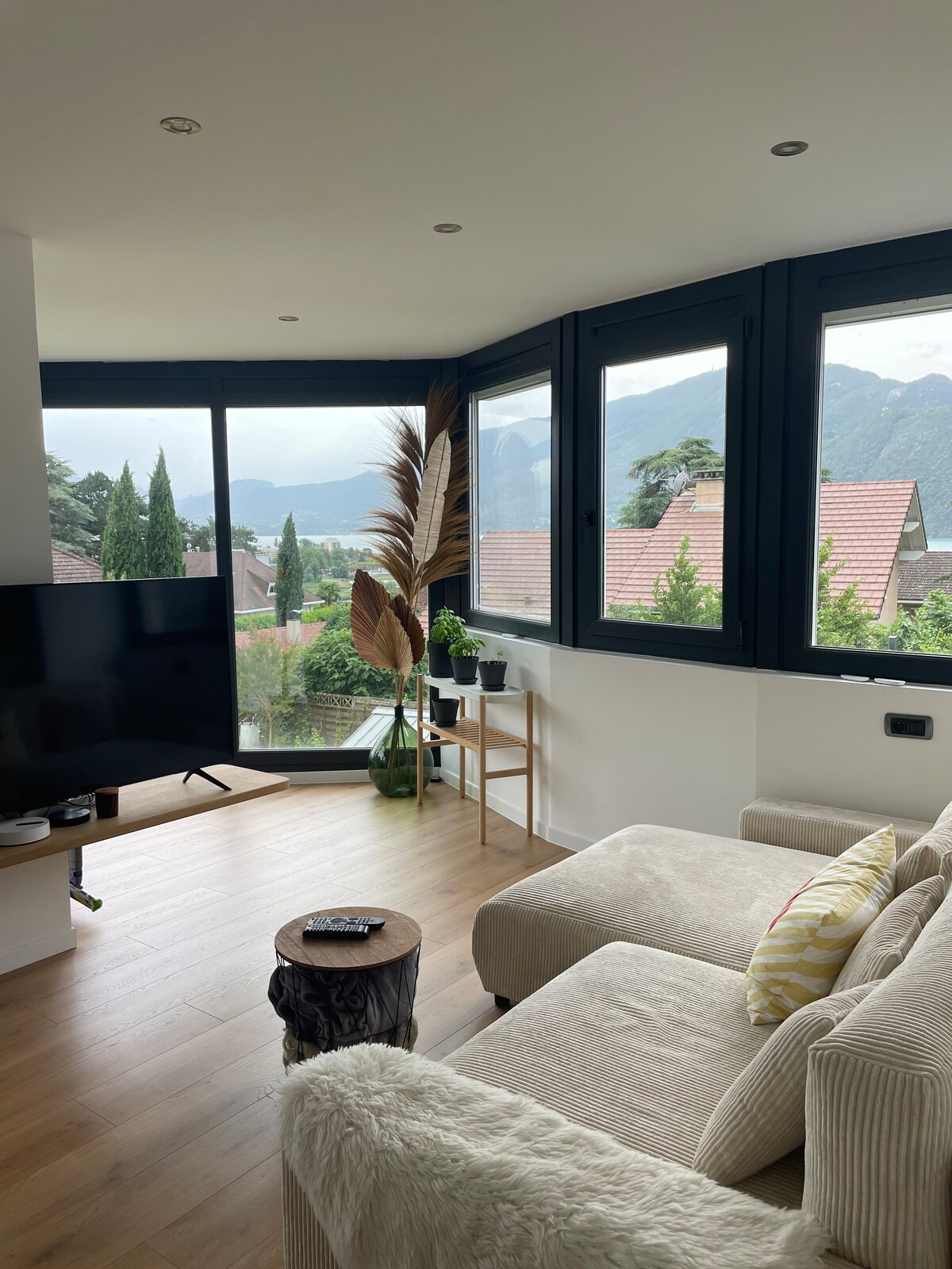 Dans un écrin de verdure avec vue sur le lac, La Croix du Nivollet et la Dent du Chat, notre appartement de 50 m2 est composé de : ☀️ Un lumineux séjour équipé d’un canapé convertible (pour 2 enfants ou 1 adulte), 🍝 Une cuisine toute équipée avec îlot central. ✨ Une chambre équipée d’un lit 160x200 cm et de rangements. 💦 D’une salle de bain/WC (douche à l’italienne) 🏖️ A 5 mn des plages (25/30 mn à pied) 🏔️ A 5 mn des départs de rando 🌳 A 5 mn de l’esplanade (Musilac) (30 mn à pied)