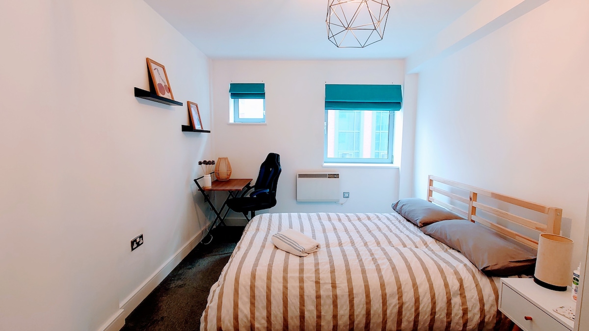 Discover modern comfort at this stylishly furnished townhouse in Southville. Located on a quiet street yet opposite the city centre, it offers the best of both worlds. Sleeps up to 6 with 2 double bedrooms, 1 queen. All share 1 bathroom with bath/shower and a downstairs WC. The master has sliding doors leading out to a roof terrace with lovely views and seating. Downstairs, find a well-equipped kitchen, dining and living area with smart TV. Garage parking for 1 car with EV charger.