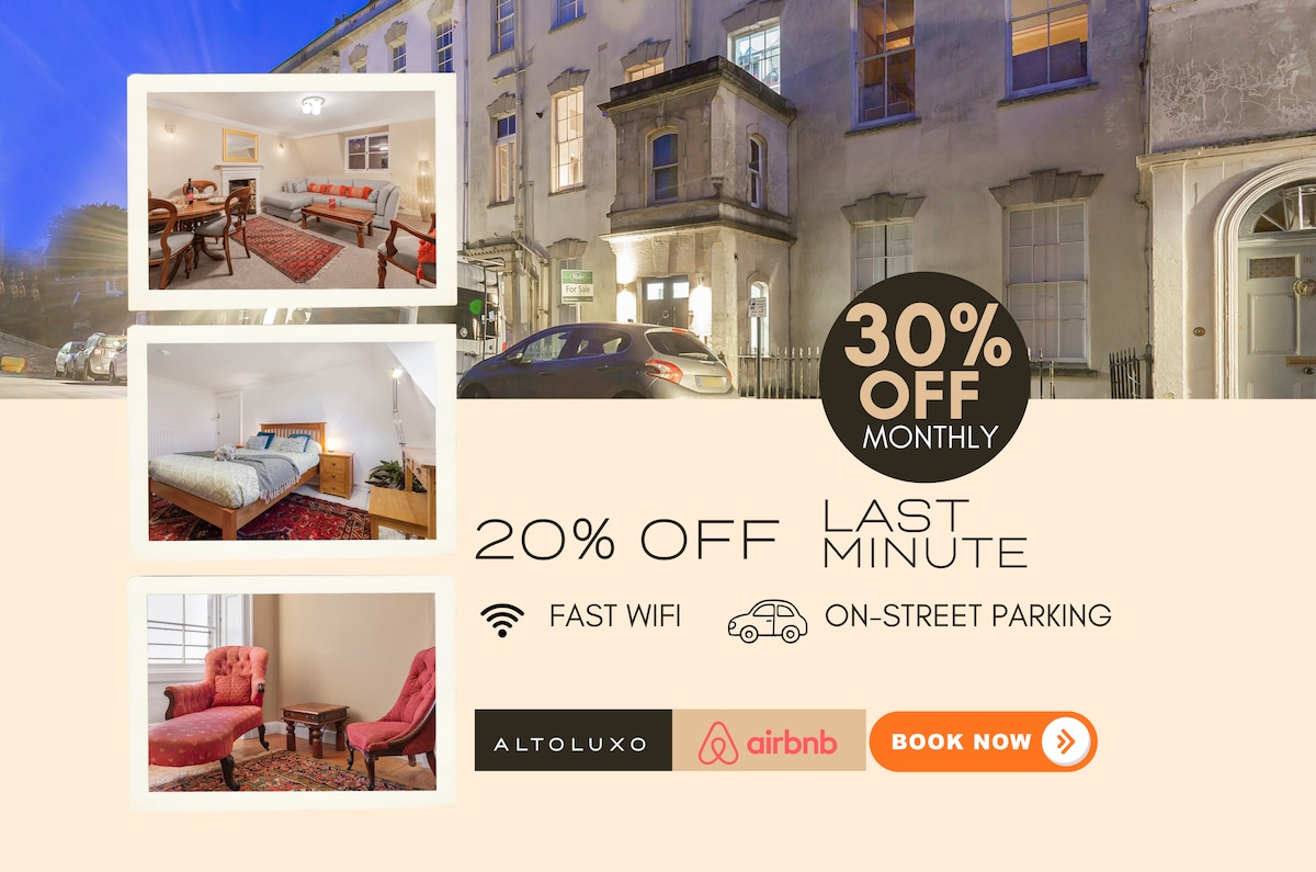 A special place close to Bristol centre, Clifton and our iconic harbourside. A one or two bed flat with a separate sitting room which can be used as a 2nd ensuite bedroom as required. Separate kitchen/diner. A short walk into Clifton Village with oodles of eateries, pubs and independent shops. Short walk to harbourside, the Downs and the Suspension Bridge/ Ashton Court. Fabulous views over this City. Everything walkable and accessible. This is a basement flat in our beautiful Georgian home.