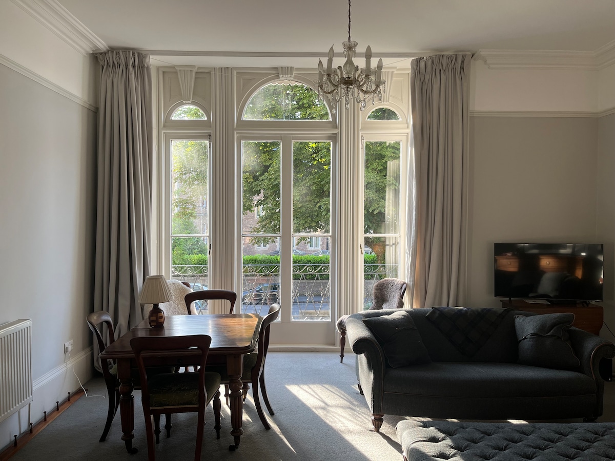 This airy, newly-refurbished 1 bedroom garden apartment is part of a Grade II listed Georgian home, with lovely high ceilings and a view of a large, south-east facing garden. It is situated in the quiet neighbourhood of Redland, only 5 minutes walk from the Downs, as well as the bars and restaurants of Whiteladies Road. It is 5 minutes drive from Clifton Suspension Bridge, the University and BBC. Completely self-contained, it offers a private entrance, large living space & leads into the garden.