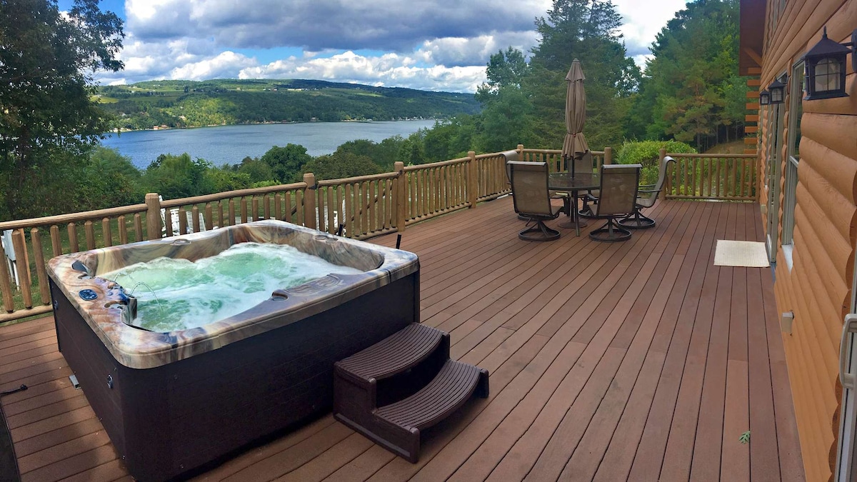 A beautiful log cabin in the woods with an incredible view, that sleeps 5. There is a queen bed downstairs, a double in loft and then a roll-away twin in living room. Peace and quiet, discovering nature and resetting yourself. Life has been a challenge and it is good to step back sometimes. Our peaceful retreat is centrally located near many parks and waterfalls. Located between beautiful Canandaigua, Keuka and Seneca Lakes.