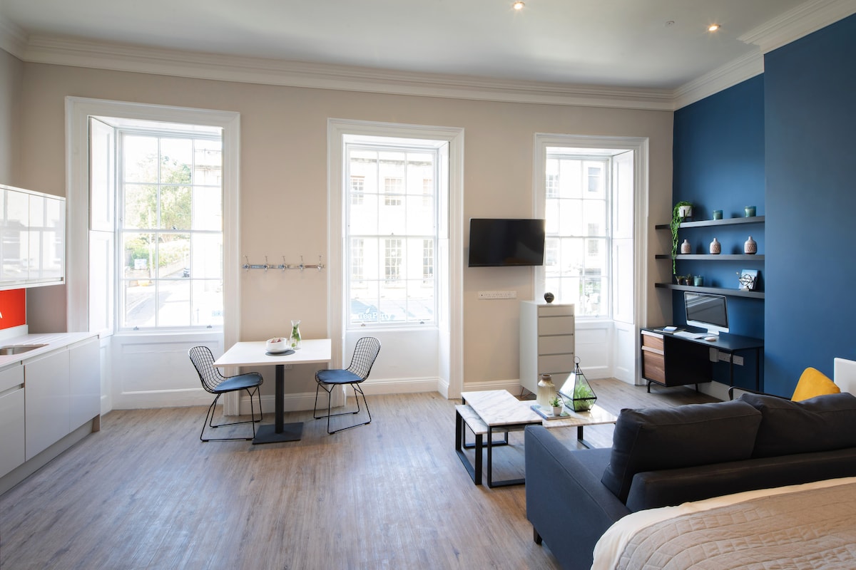 Refurbished to a high standard, this beautiful, fully equipped apartment is perfect for a weekend away sightseeing, or for longer stays. The on site car parking is an added bonus! Many of Bristol’s tourist attractions are within walking distance: Bristol museum, Hippodrome theatre, St George's music venue, the Old Vic theatre, and more. Clifton village with its boutique shops, restaurants, and coffee houses and the Clifton Suspension Bridge and Observatory are a 5 minute stroll.